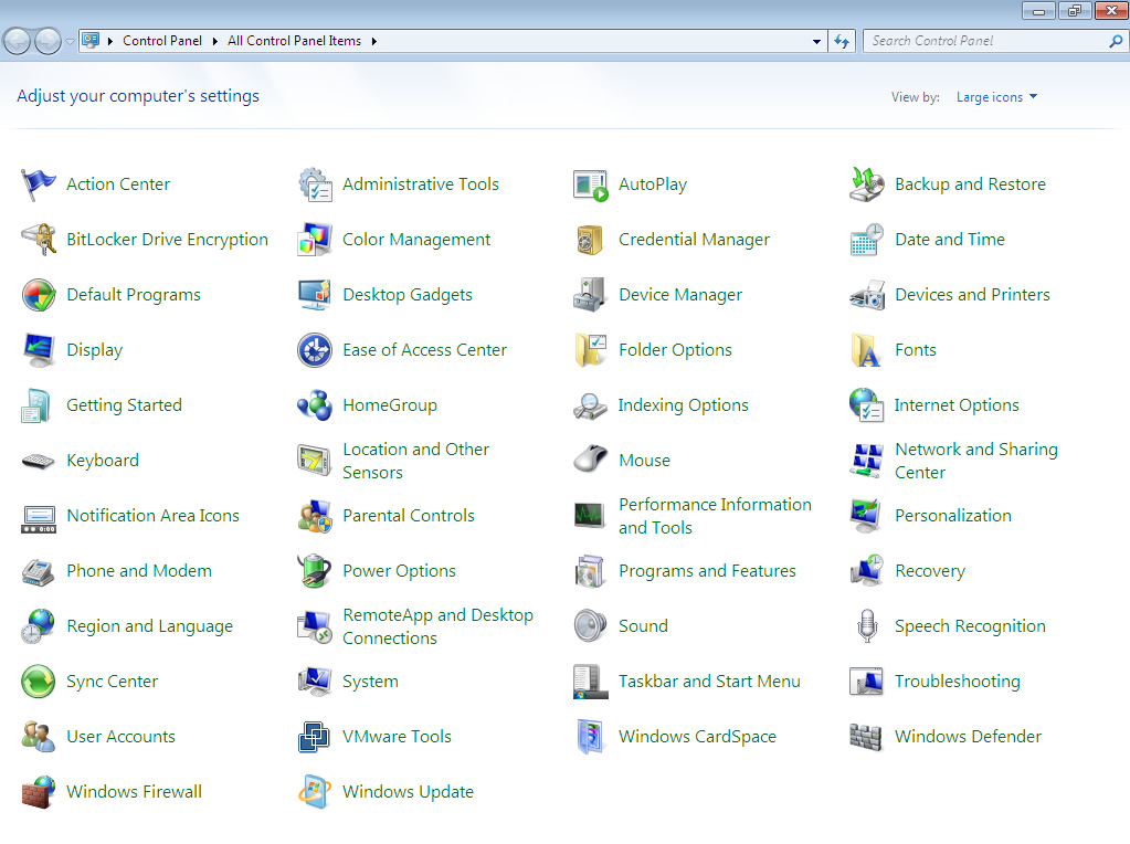 Moving on to the Control Panel now and my first impression is gosh, there’s an awful lot of stuff in Windows nowadays. This is the Windows 7 Control Panel, set to display all the icons (click to enlarge):