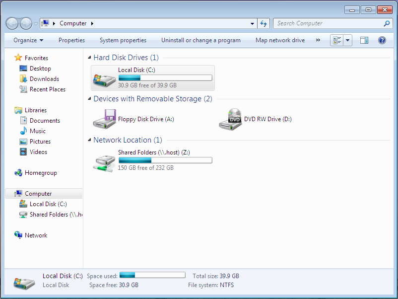 When Explorer is open in the Computer view so that local drives are displayed, a status area at the bottom of the window shows pertinent information about the selected drive. Unfortunately the labels are arranged in a haphazard fashion without regard to design niceties such as lining the edges up. It makes me wonder if those responsible actually have access to a visual GUI builder tool, or if the user interface was created by manually editing GUI control co-ordinate values in a resource file.