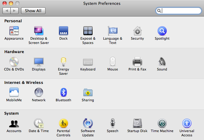 —Of course this isn’t exactly a fair comparison because comparing Windows 7 to Windows 3.11 is a bit like comparing today’s Ford Mondeo with the aforementioned Ford Edsel. The world has moved on and the modern incarnation does so much more. The point I'm making is that the latest Control Panel is rather intimidating. Mac OS X is at least as capable an OS as Windows 7, yet somehow manages to get by with this minimal selection (click to enlarge):